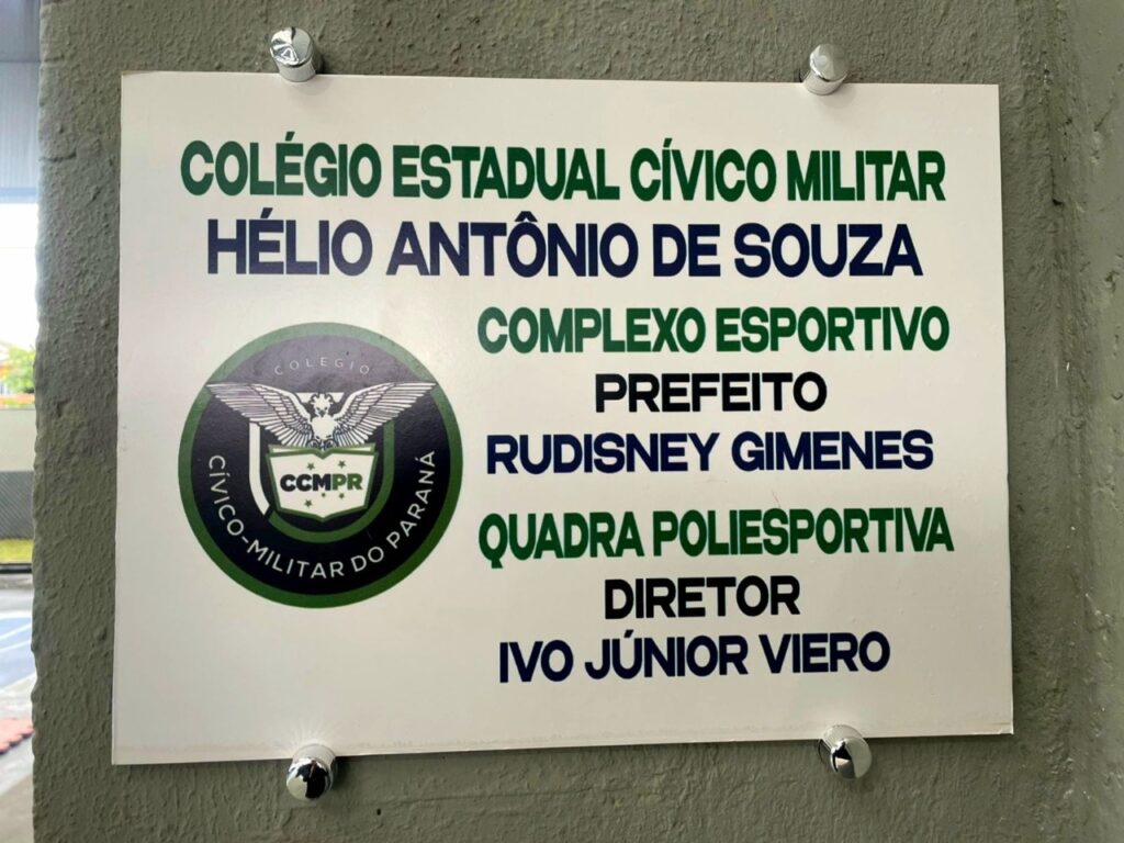 Em um evento emocionante e significativo, o Colégio Estadual Cívico-Militar Hélio Antônio de Souza, em Pontal do Paraná, reinaugurou sua quadra poliesportiva, agora batizada de Complexo Esportivo Prefeito Rudisney Gimenes. A cerimônia não apenas devolveu à comunidade escolar um espaço moderno e adequado para a prática de esportes, mas também prestou uma justa homenagem a duas figuras que deixaram um legado indelével na educação e no desenvolvimento do município: o ex-prefeito Rudisney Gimenes e o ex-diretor Ivo Junior Viero.
